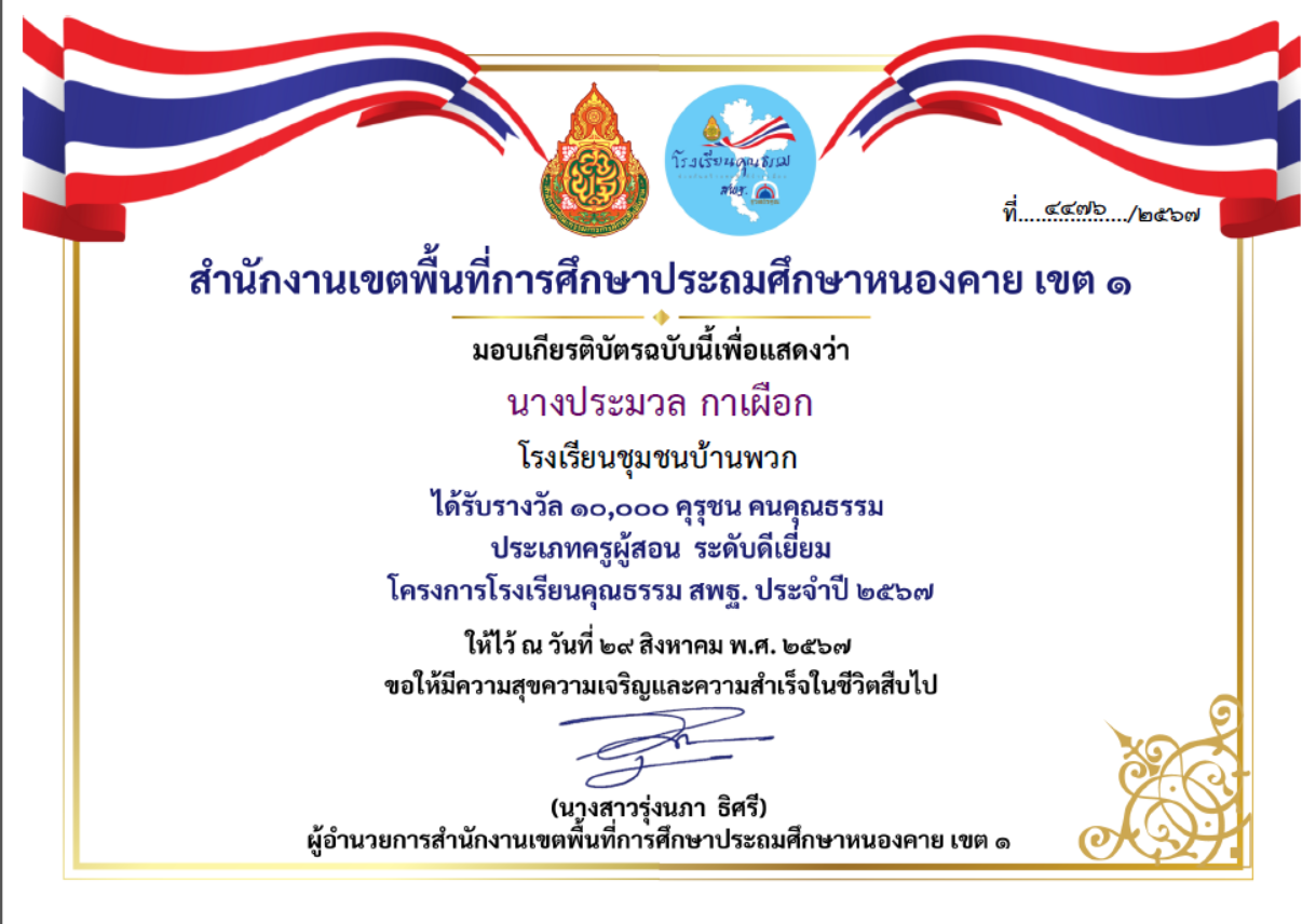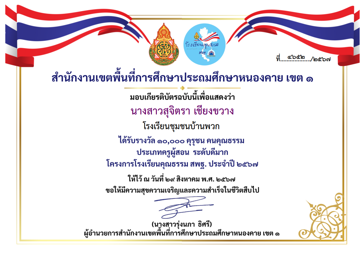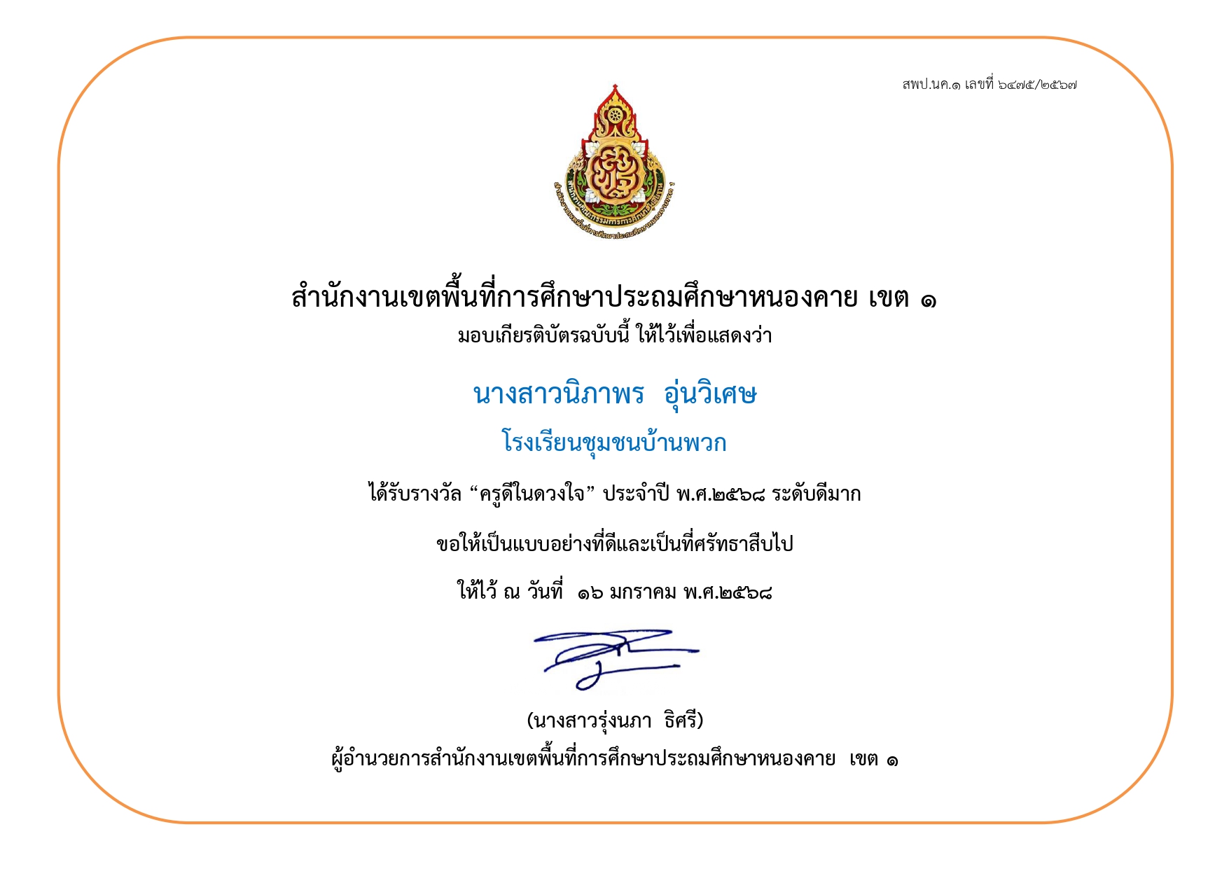 ครูดีในดวงใจ ประจำปี พ.ศ. 2568 ระดับดีมาก