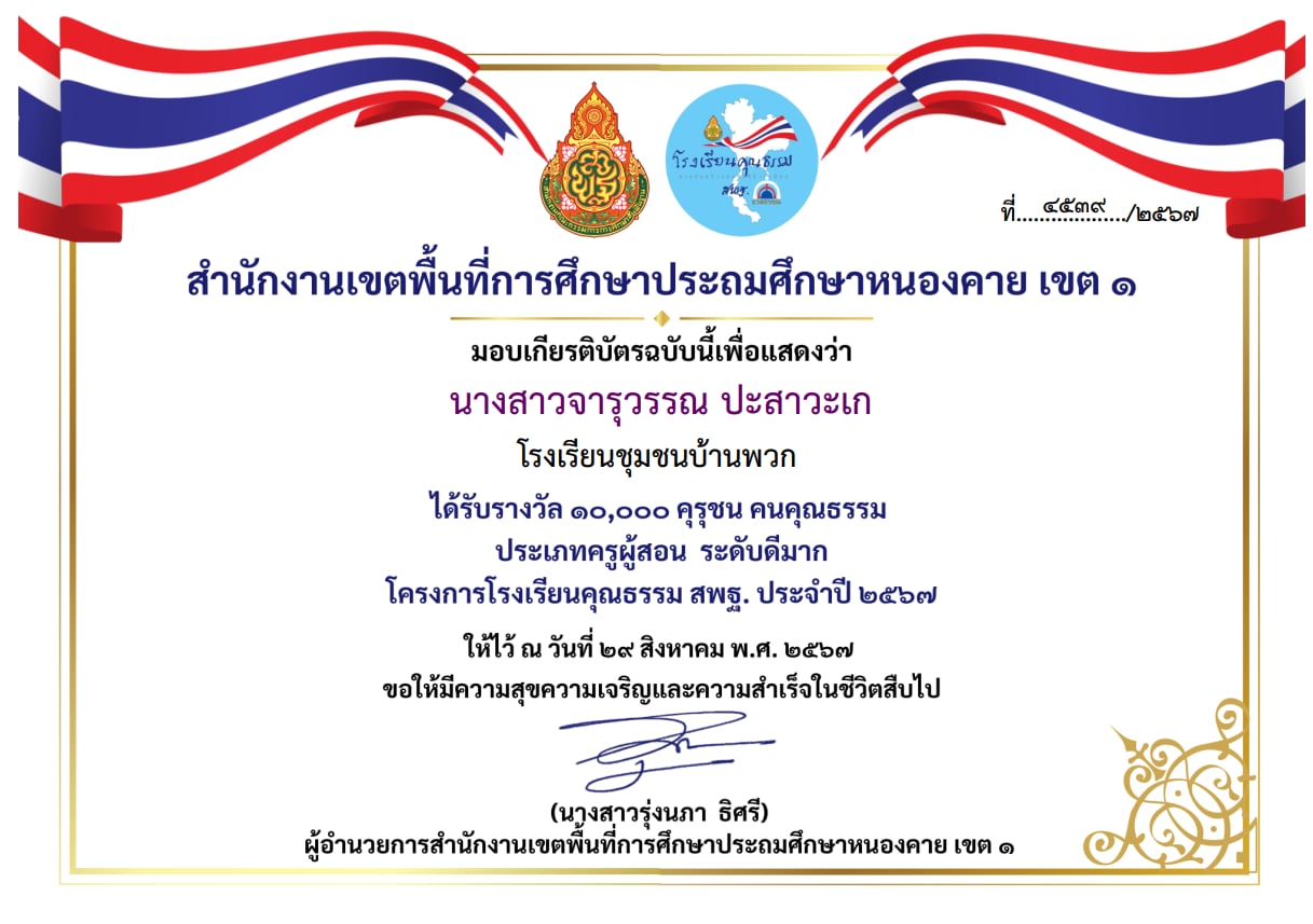 ได้รับรางวัล 10,000 คุรุชนคนคุณธรรม